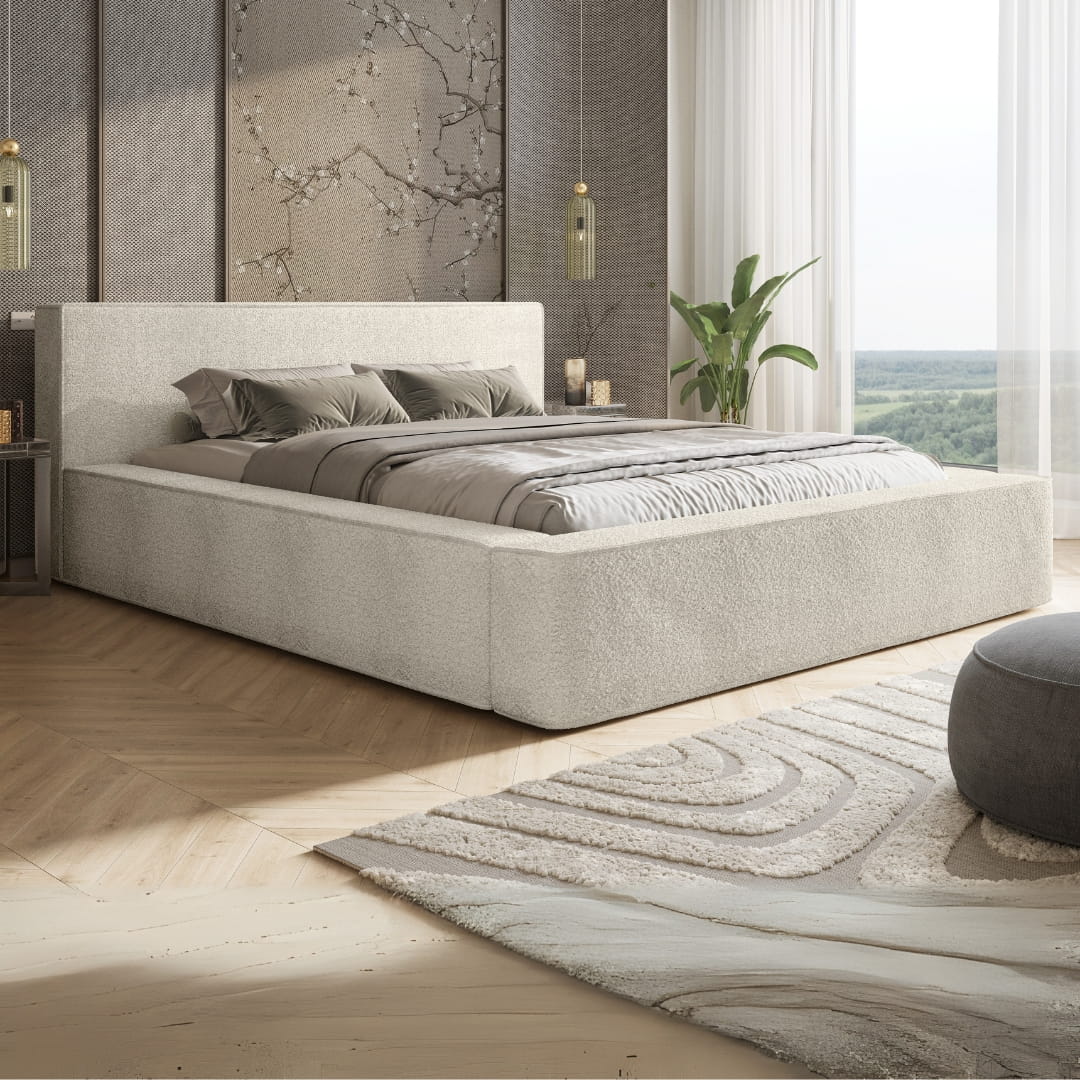 Fedezd fel az Alma franciaágy időtálló stílusát és modern kényelmét! Ez a letisztult, buklészövettel kárpitozott ágy garantáltan a hálószoba központi eleme lesz – legyen szó skandináv, japandi vagy glamour stílusról.