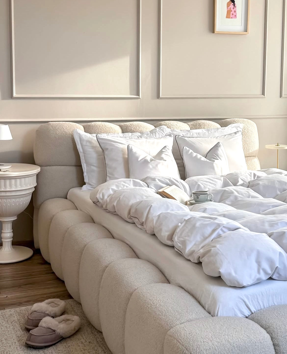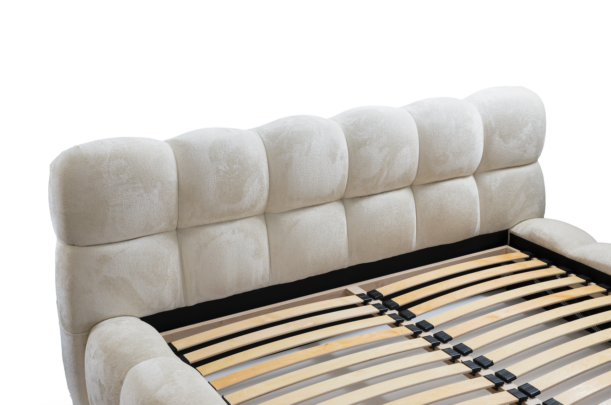 A Boston kárpitozott franciaágy modern megjelenésével és praktikus kialakításával a kényelmes pihenés megtestesítője. Ez a különleges designnal rendelkező bútor kiváló minőségű, kellemes tapintású szövetből készült, amely eleganciát és nyugalmat hoz a hálószobádba.