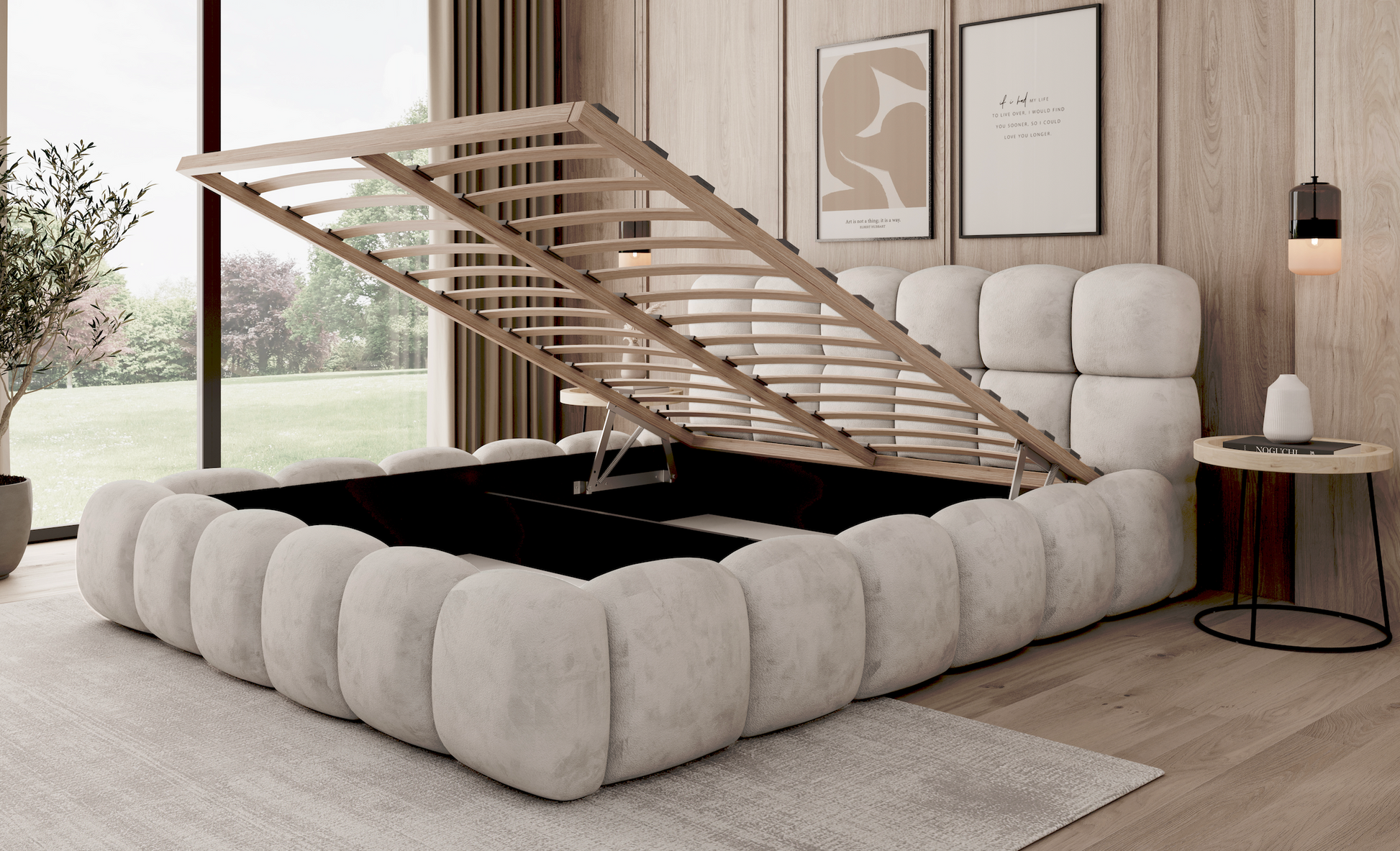 Boston kárpitozott franciaágy tárolóval és ágyráccsal