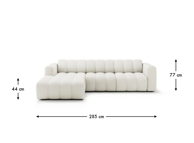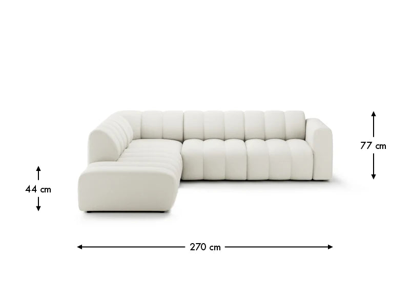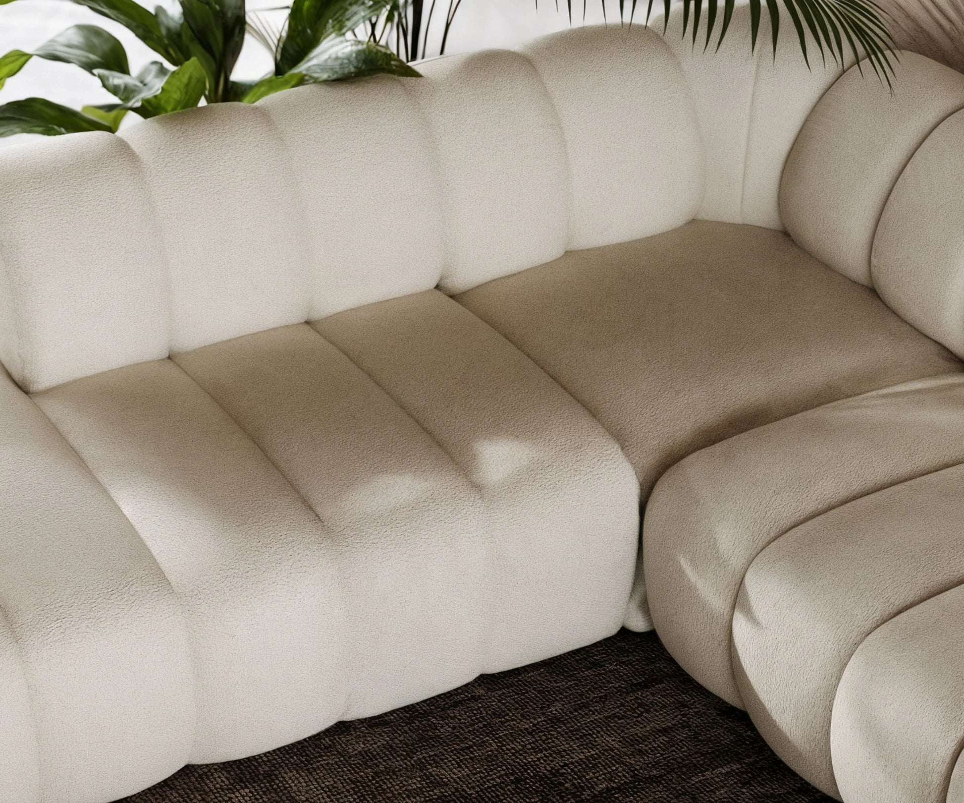 A Bummel sarokkanapé a modern elegancia és a letisztult minimalizmus tökéletes kombinációja. Lágyan ívelt vonalai, mély, függőleges steppeléssel kialakított párnaszegmensei otthonos, mégis luxus megjelenést kölcsönöznek. A széles karfák és az egységes, tömbszerű forma a legújabb lakberendezési trendekhez igazodik – tökéletes választás a japandi stílusú enteriőrökbe.