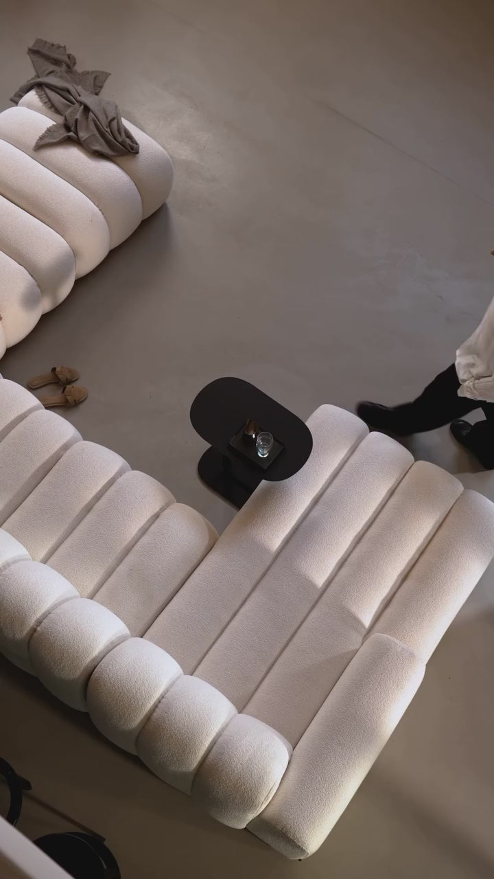 A Bummel U alakú sarokkanapé lenyűgöző, modern formájával és minimalista esztétikájával azonnal magára vonja a figyelmet. Lágy, lekerekített vonalai, valamint a mély, függőleges steppelésekből kialakított párnaszegmensek különleges luxus és otthonosság érzetét keltik. A széles karfák és az egységes, tömbszerű forma tökéletesen illeszkedik a legújabb lakberendezési trendekhez – legyen szó modern soft, scandi-boho vagy japandi stílusú enteriőrről.