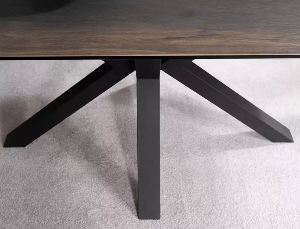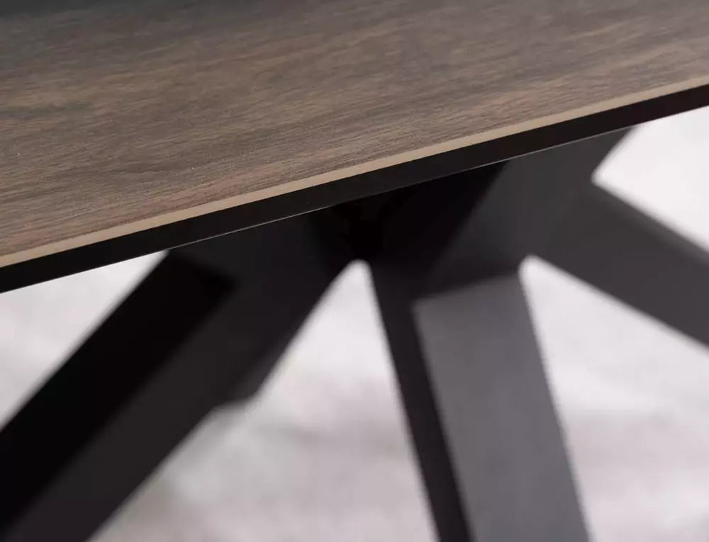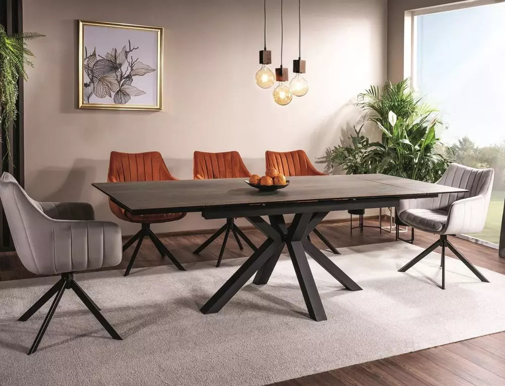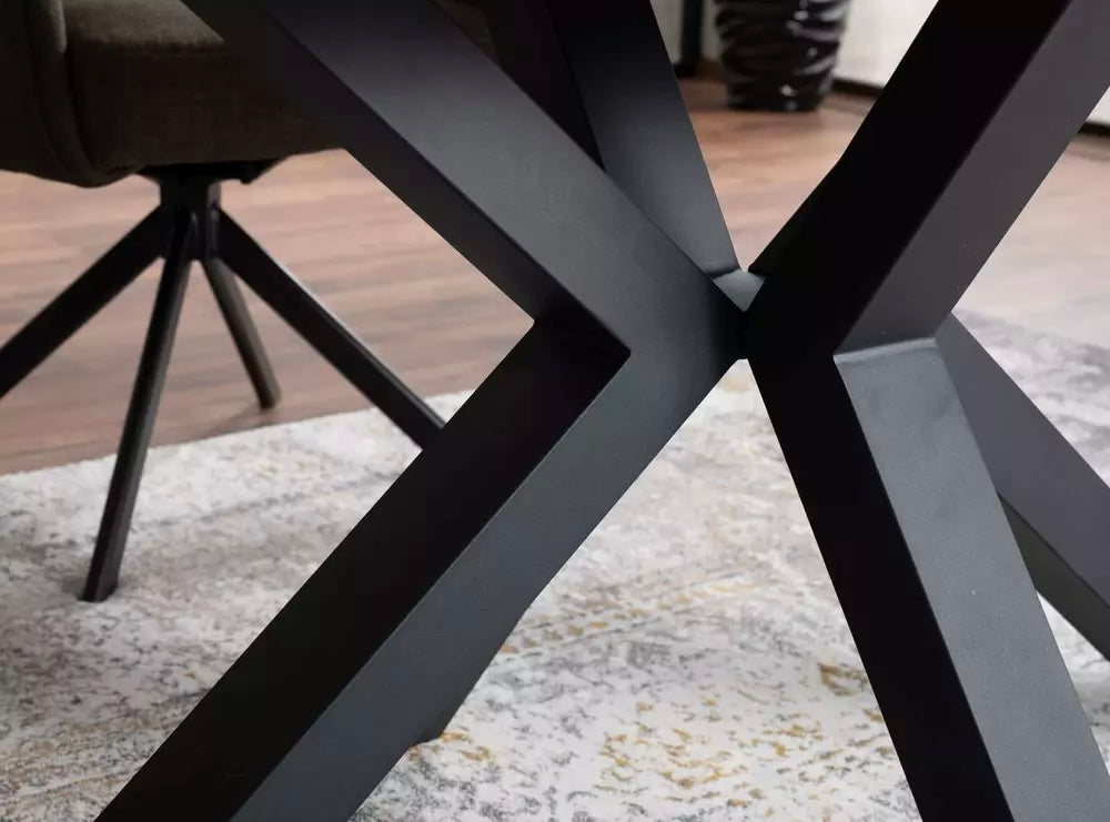 A Castello étkezőasztal különlegessége a kereszt formájú, fekete porszórt fém lábszerkezet, amely modern karaktert ad az asztalnak, miközben rendkívül stabil tartást biztosít. Az erőteljes, mégis kifinomult megjelenésnek köszönhetően tökéletesen illeszkedik loft, modern vagy glamour stílusú enteriőrökbe.