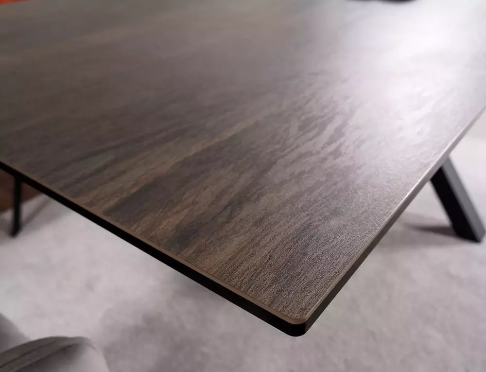 barna fahatású kerámia lap fekete lábakkal – természetközeli, loft vagy melegebb hangulatú terekbe
