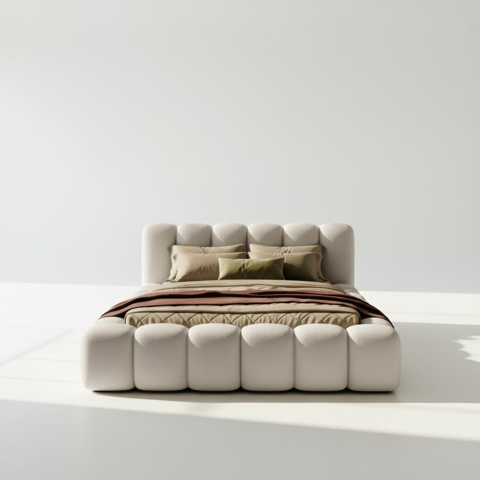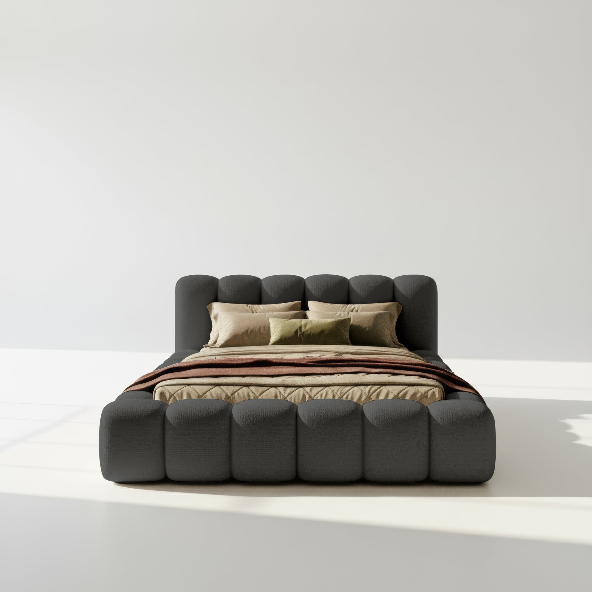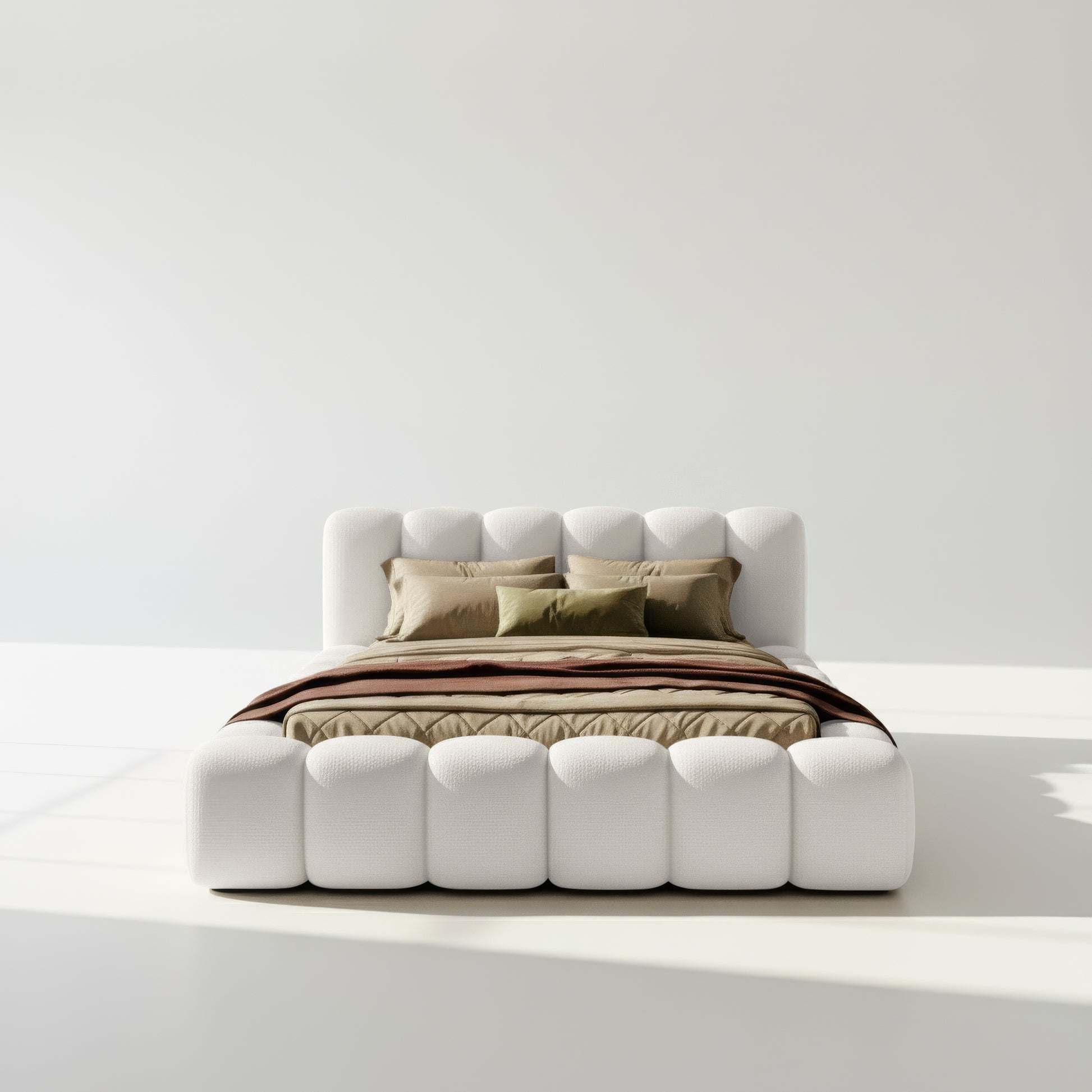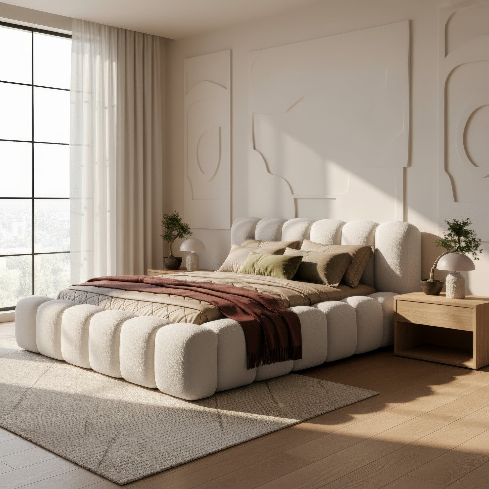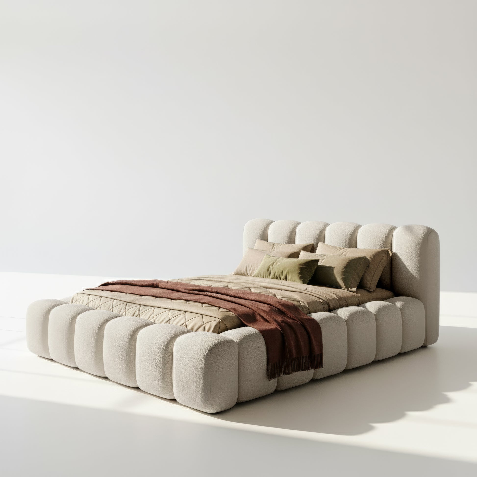 A Dream Boucle kárpitozott franciaágy modern megjelenésével és praktikus kialakításával a kényelmes pihenés megtestesítője. Ez a különleges designnal rendelkező bútor kiváló minőségű, kellemes tapintású szövetből készült, amely eleganciát és nyugalmat hoz a hálószobádba.