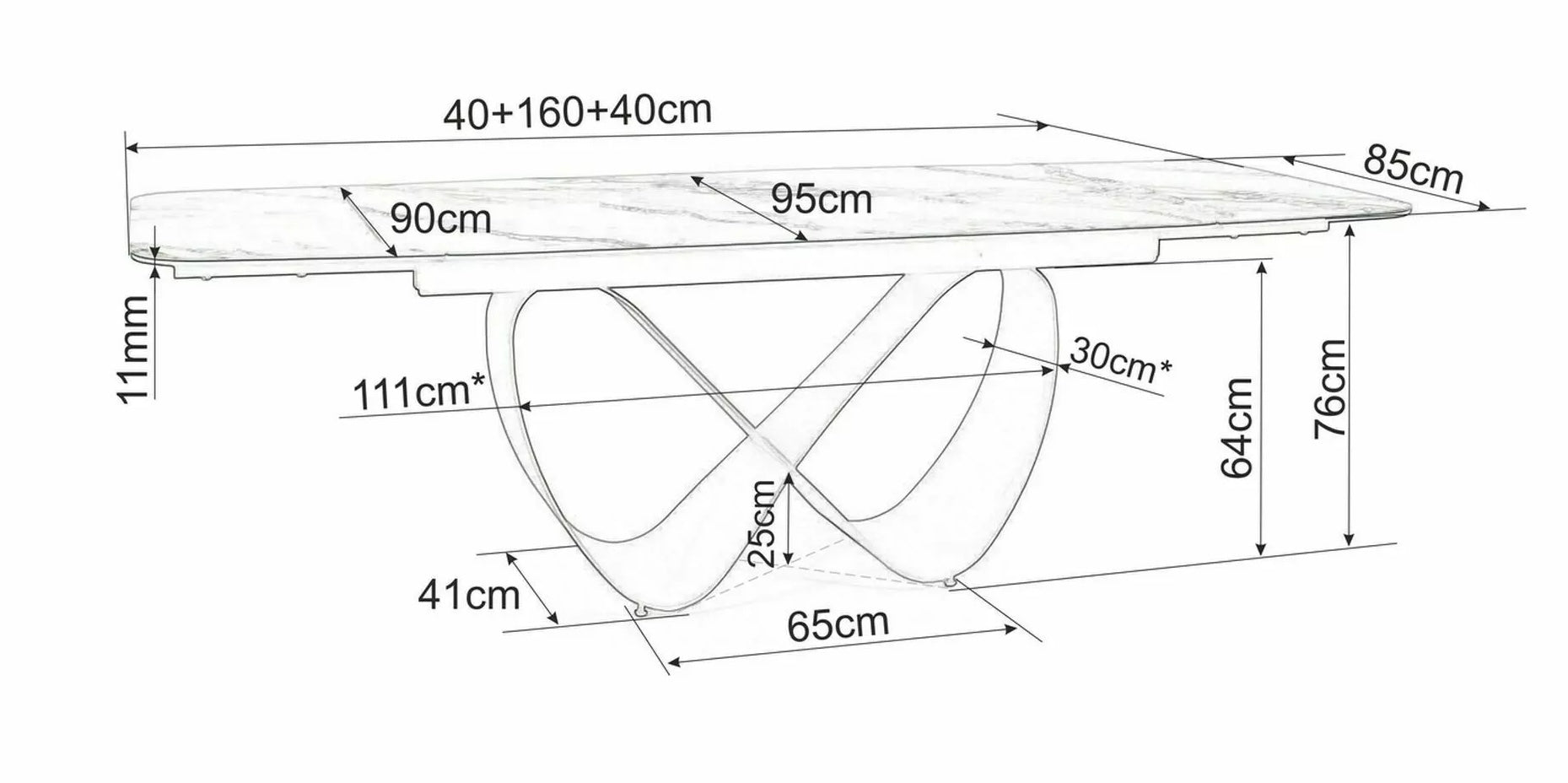Az asztal alapmérete 160×95 cm, amely kényelmesen elfér körülötte 6–8 fő. A bővíthető mechanizmusnak köszönhetően a hossz 240 cm-re növelhető, így 10 személy számára is ideális választás. Ez teszi az Infinityt tökéletes megoldássá családi vacsorákhoz, ünnepi összejövetelekhez és elegáns vendégfogadásokhoz.
