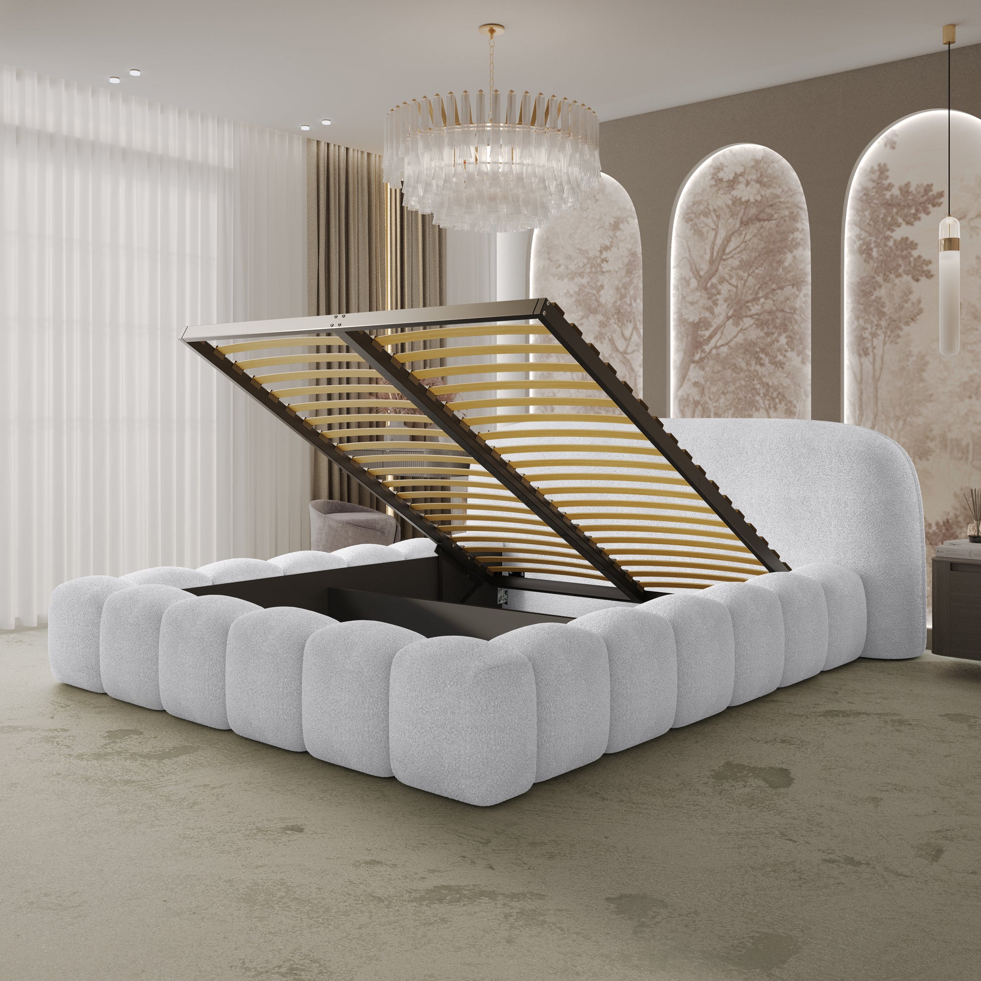 Orlando kárpitozott franciaágy tárolóval és ágyráccsal