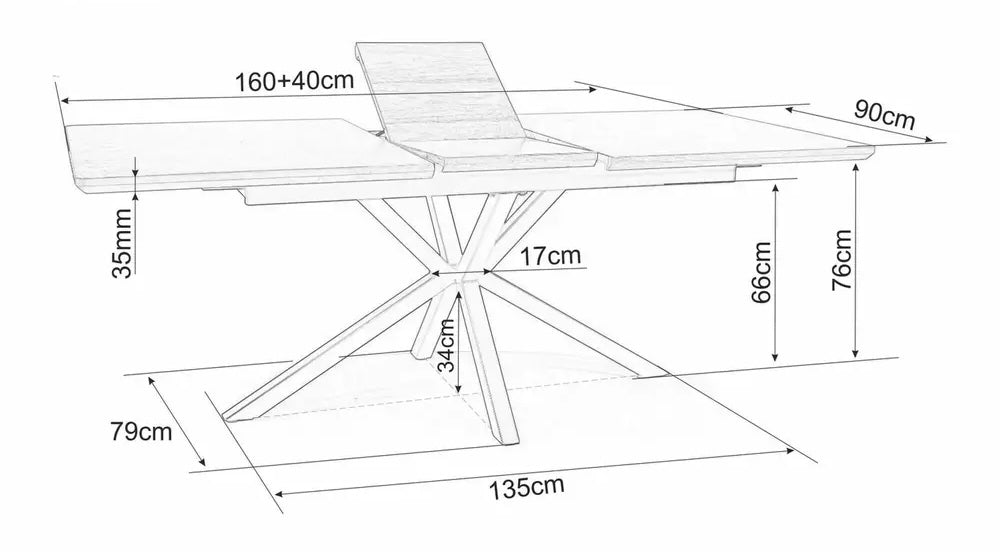 Az asztal alapmérete 160×90 cm, amely kényelmes helyet kínál 6 személy számára. A bővíthető funkció révén a hossz 200 cm-re növelhető, így akár 8 személy is elfér körülötte. Ez a praktikus megoldás ideális választássá teszi családi étkezésekhez, baráti összejövetelekhez vagy kisebb ünnepi alkalmakhoz.