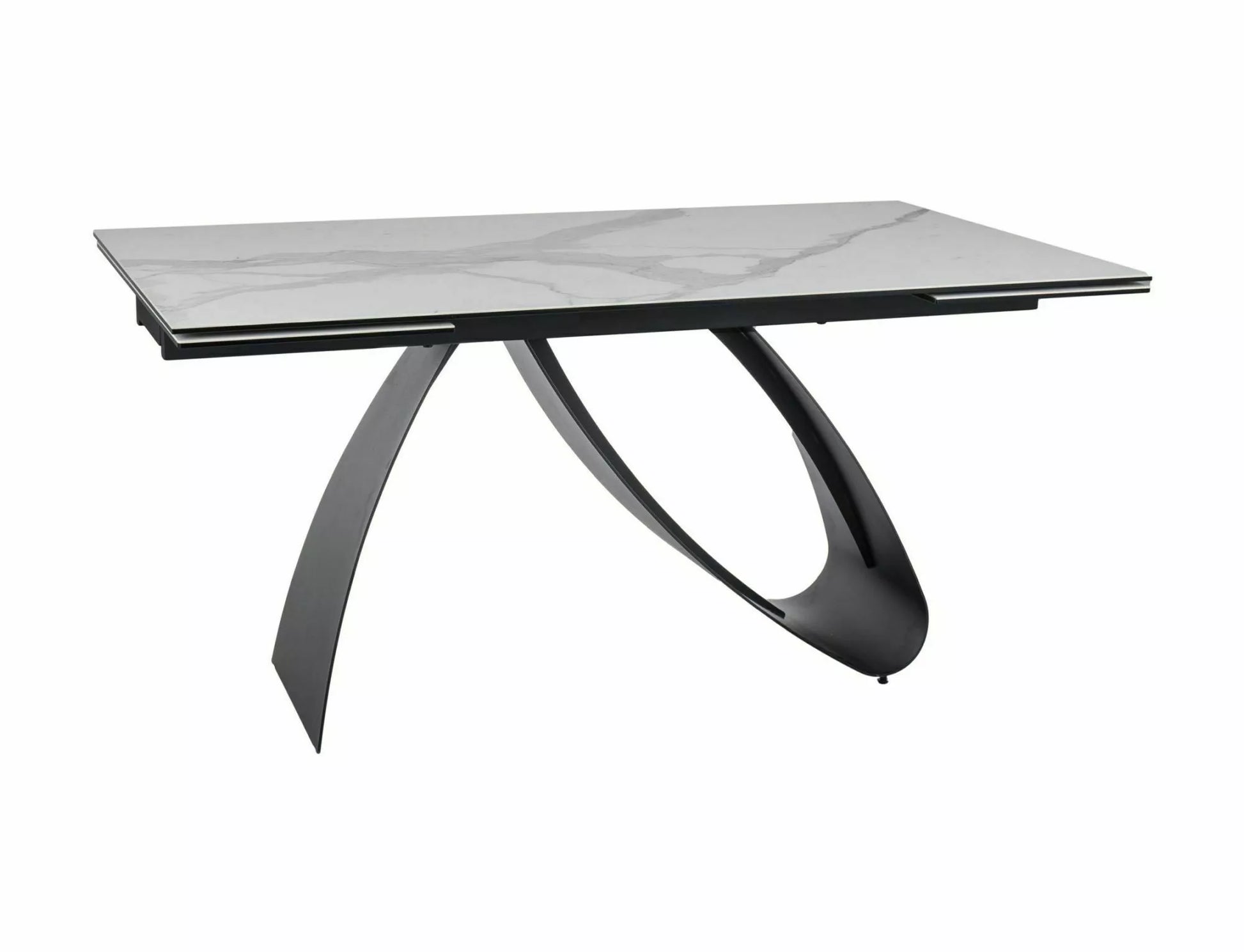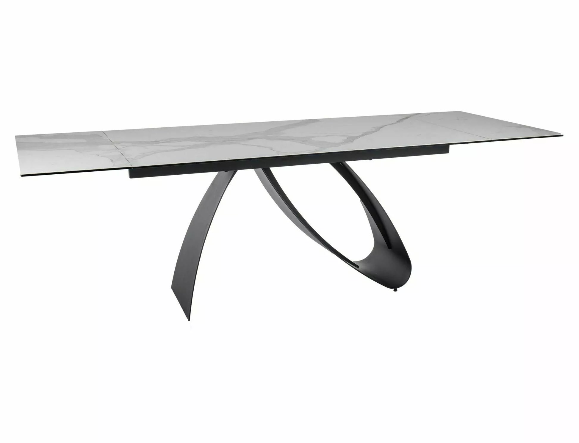 A stabil, fekete porszórt fém lábszerkezet modern karaktert ad a modellnek, miközben biztonságos tartást nyújt a masszív kerámia lappal kombinálva. A szoborszerű forma és a márványhatású lap együtt különösen elegáns megjelenést biztosít.