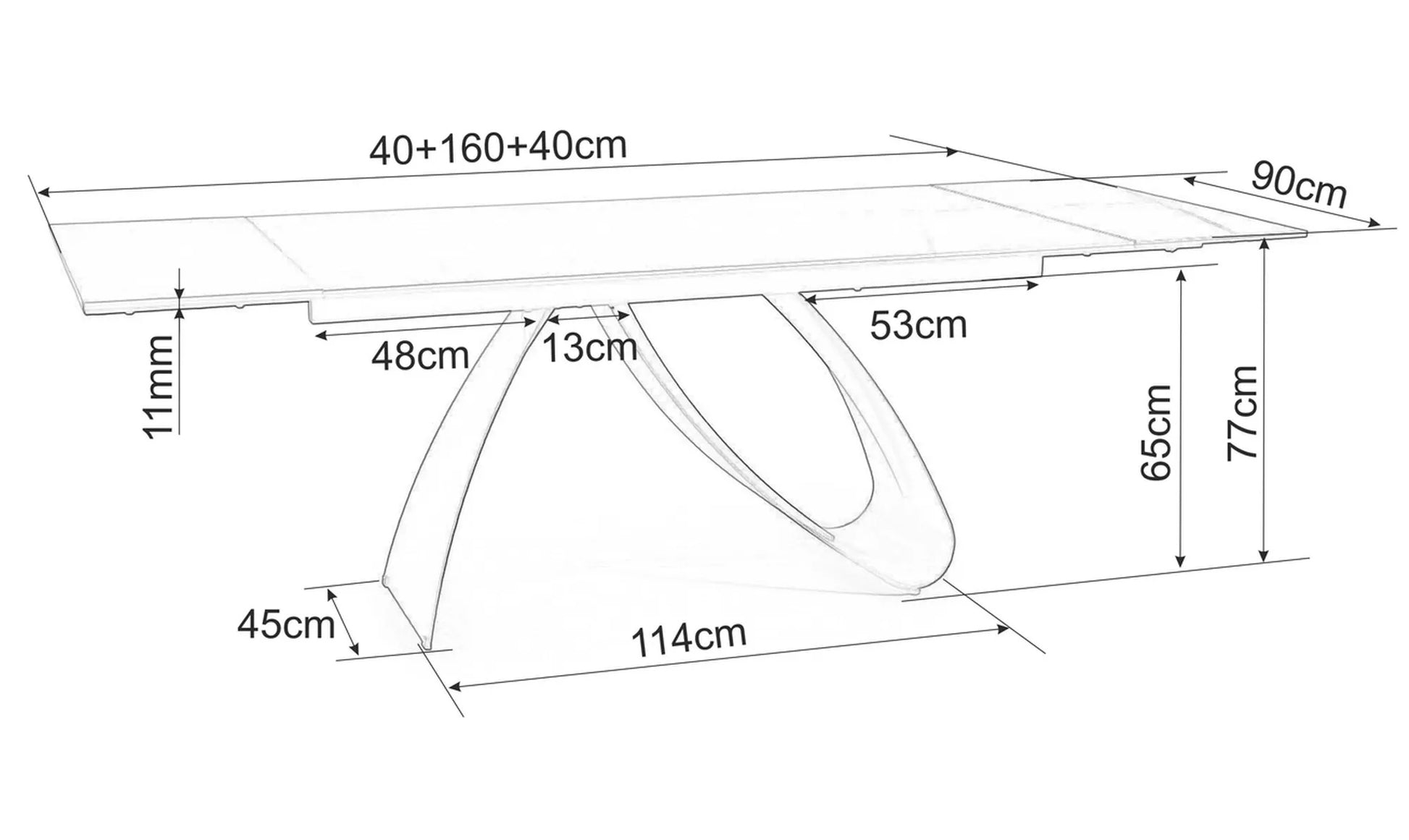 Az asztal alapmérete 160×90 cm, amely ideális 6 személy számára. A toldóelemeknek köszönhetően a hossz 200 cm-re, majd teljesen kihúzva 240 cm-re bővíthető, így akár 8–10 fő is kényelmesen elfér körülötte. Ez teszi a Veneto modellt tökéletes választássá családi vacsorákhoz, ünnepi alkalmakhoz, de akár elegáns irodai vagy vendéglátói környezetbe is.